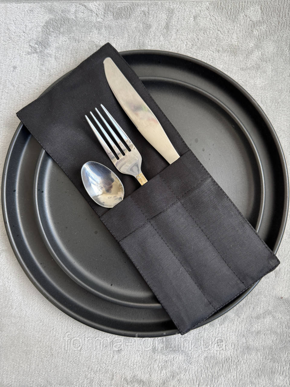 Куверт три відділення для столового приладдя, водовідштовхувальний, чорний